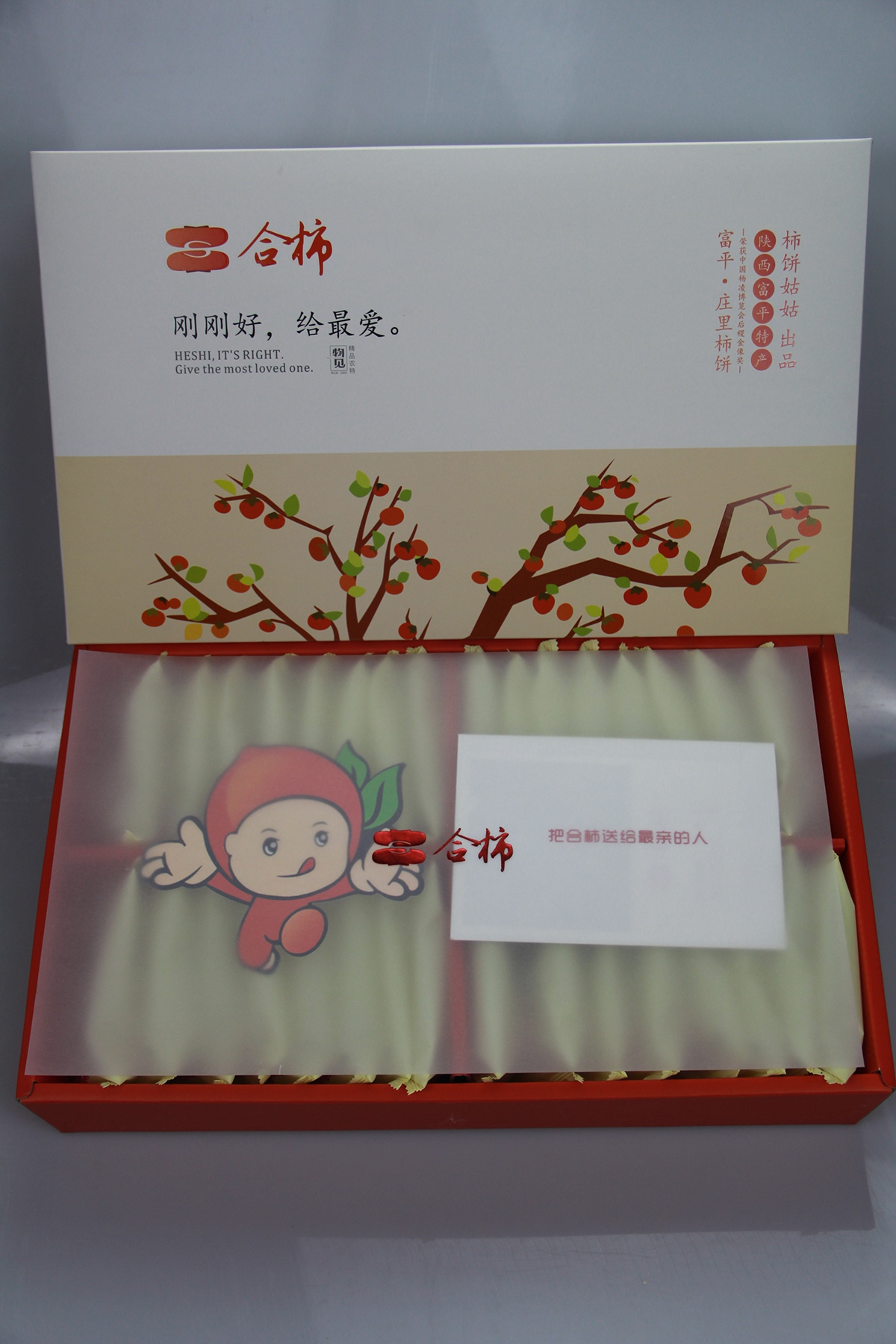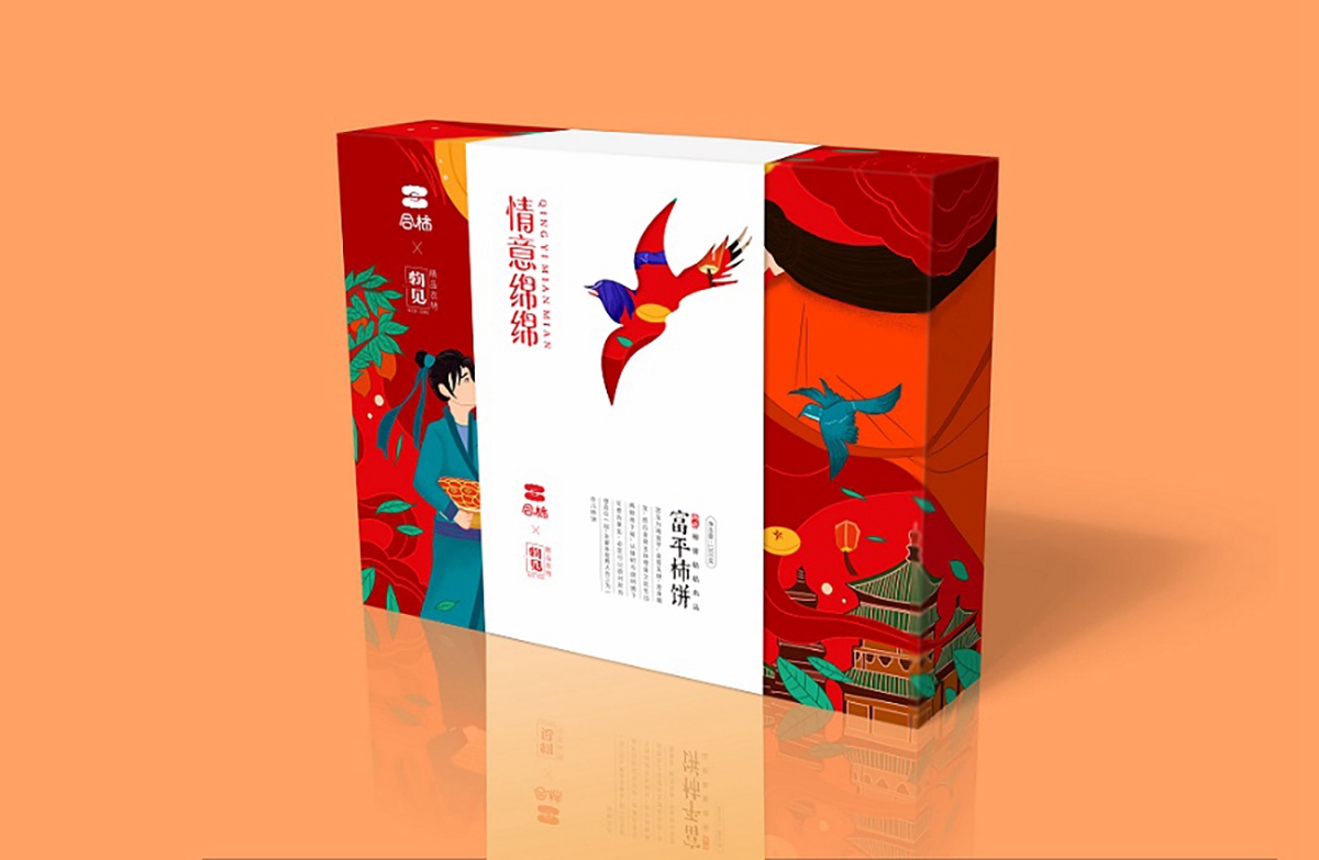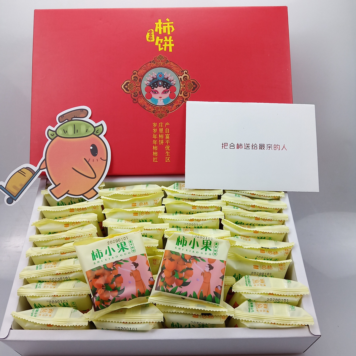 陕西特产富平柿饼_合柿系列情意绵绵红色中果礼盒750克装