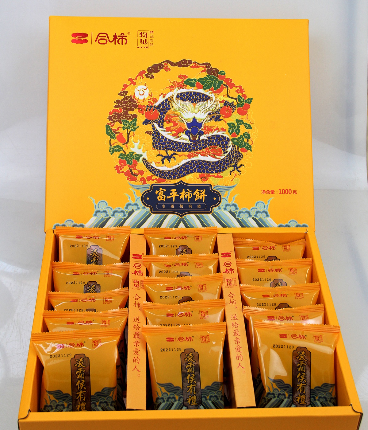 陕西特产富平柿饼_合柿系列精品凌霜候礼盒1000克
